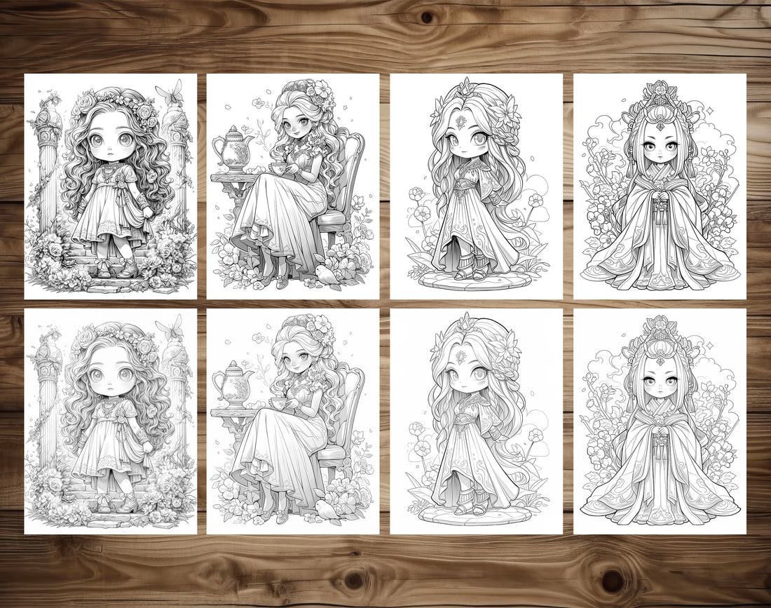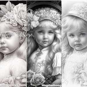 50 Spring Princess Grayscale Coloring Pages - Instant Download ...