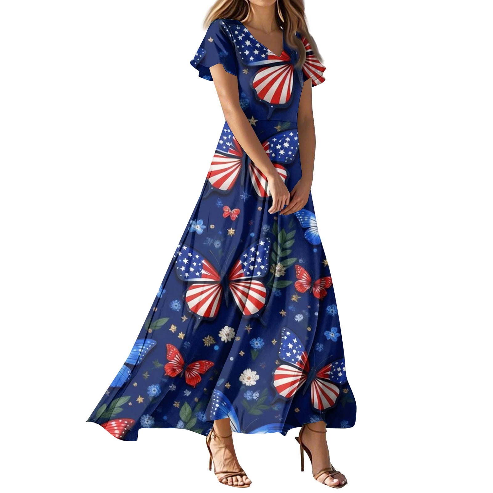 ENCCRWIN Womens Spring Dresses Summer Casual Fashion Print Color V-Neck ...