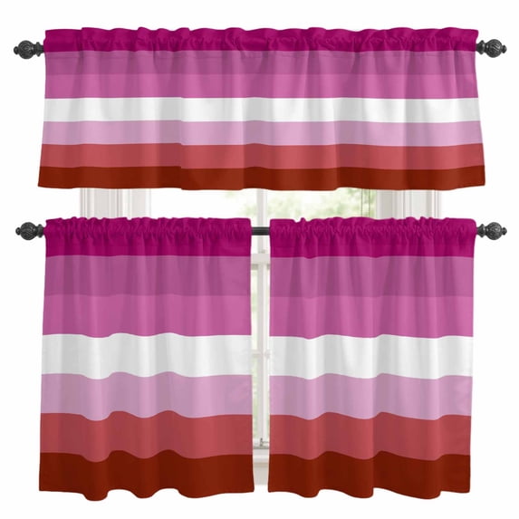 Color Stripes Kitchen Curtains Valance and Tier Set Red Purple Pink ...