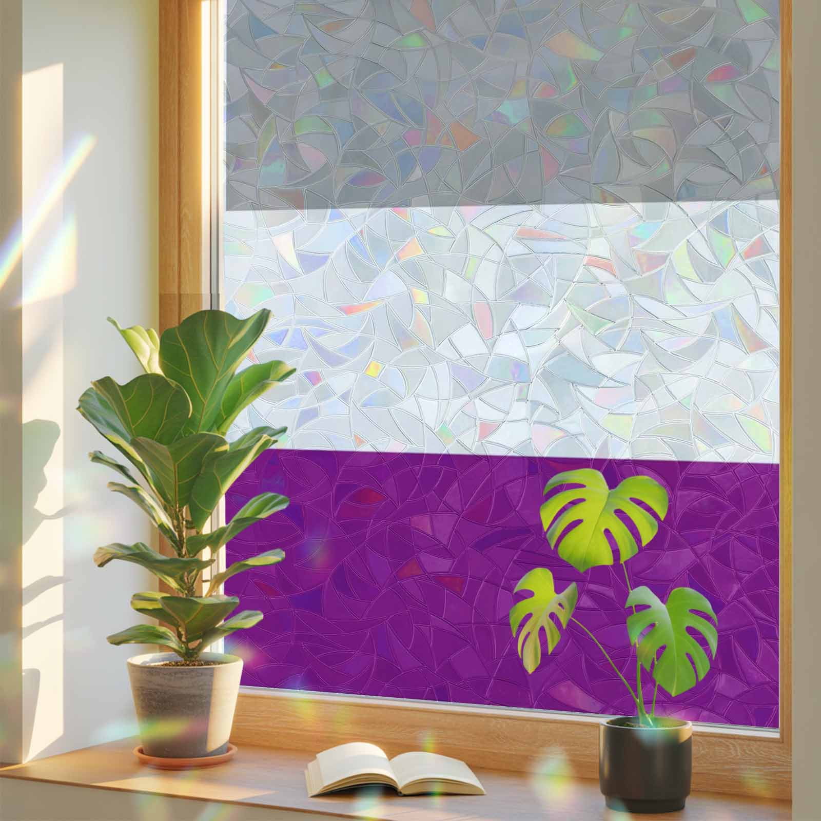 Color Stripes Window Privacy Film, Black Gray White Purple Striped ...