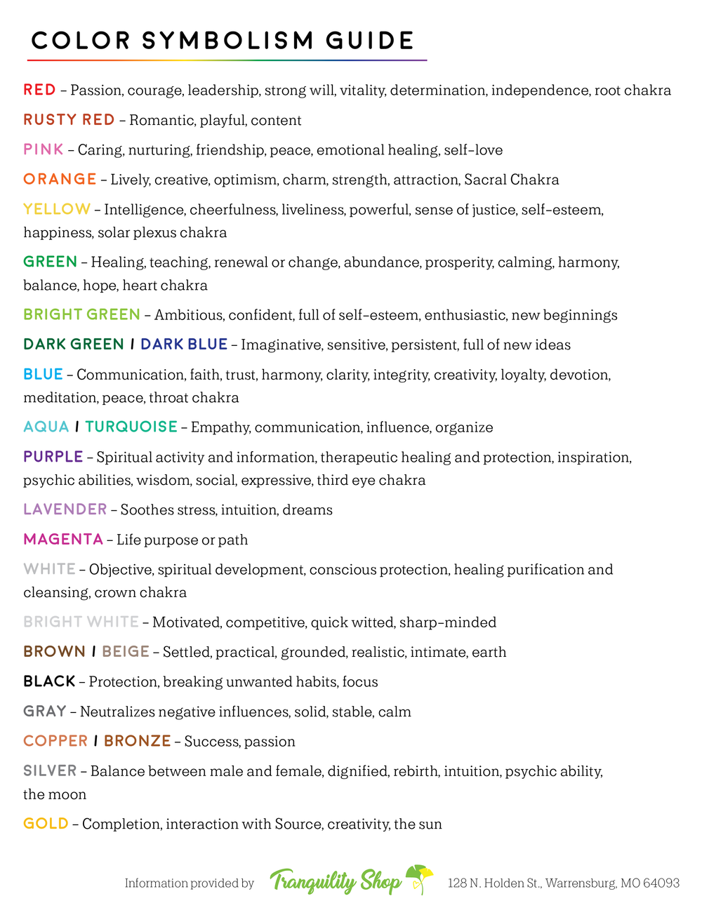 Color Symbolism Guide — Tranquility Shop