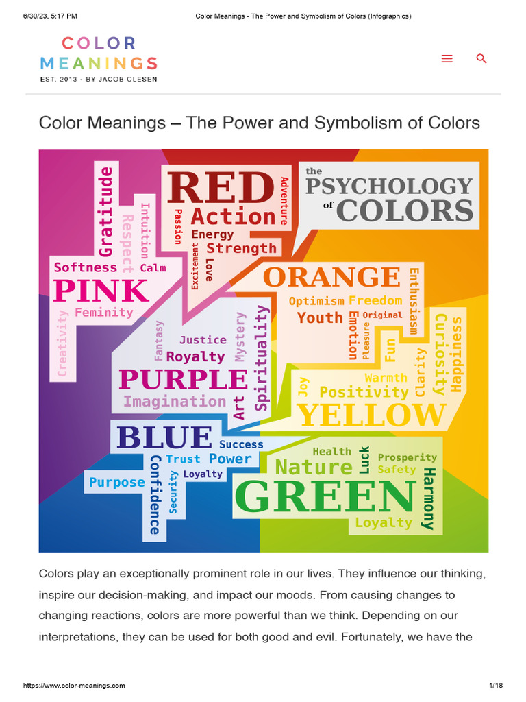 Color Meanings - The Power and Symbolism of Colors (Infographics) | PDF ...