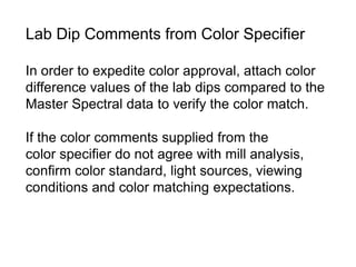 Lab Dip Color Approval Process | PDF | Textiles | Dyeing