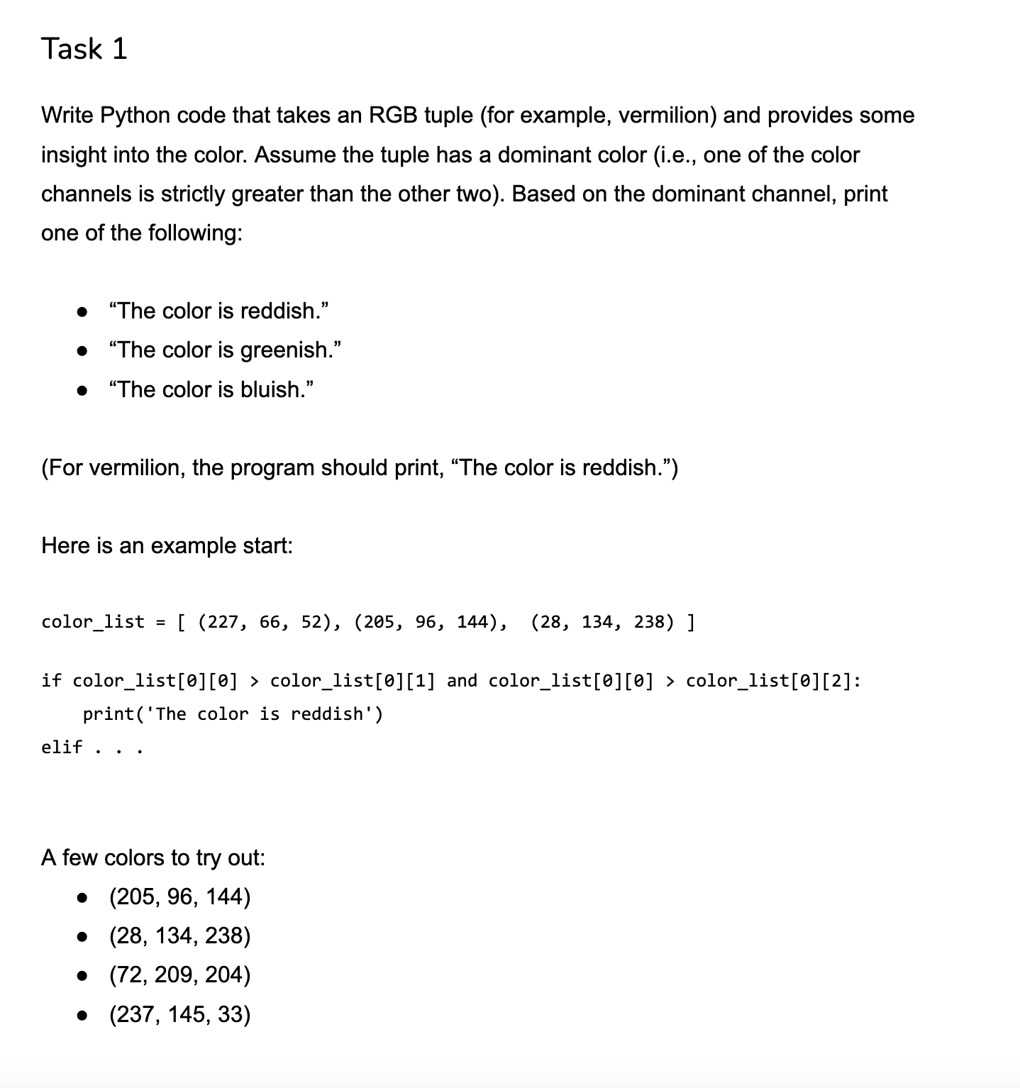 Solved Task 1 Write Python code that takes an RGB tuple (for | Chegg.com