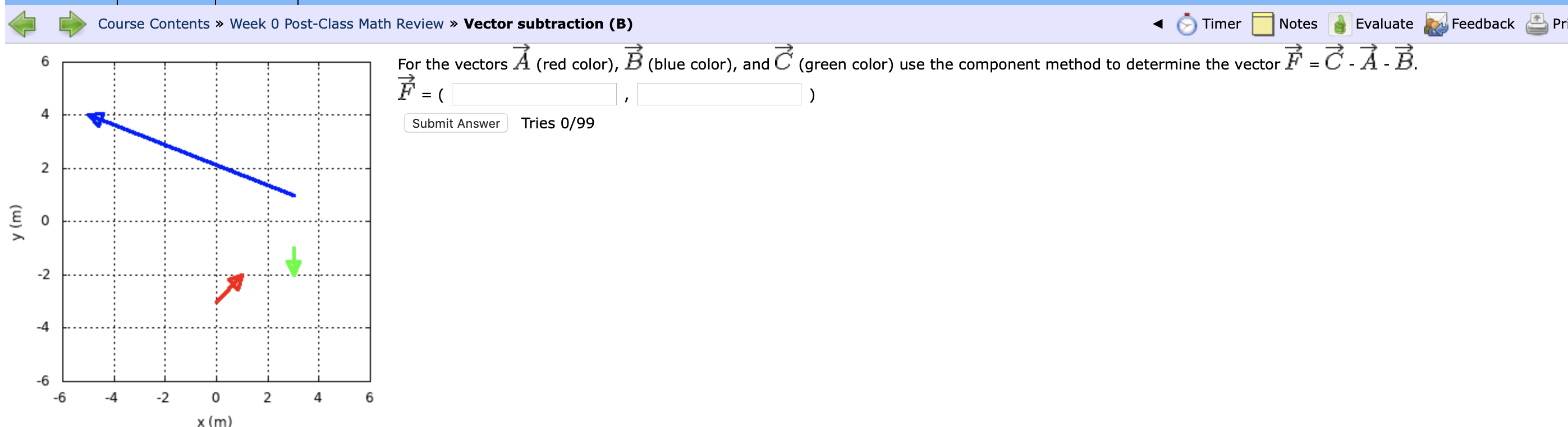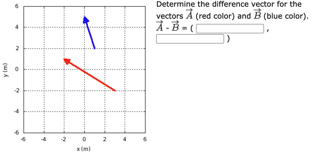 y (m) 0 -2 -4 6 4 Determine the difference vector for the vectors A⃗ ...
