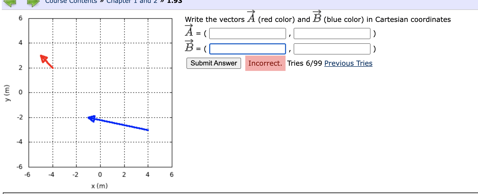 Solved Write the vectors A (red color) and B (blue color) in | Chegg.com