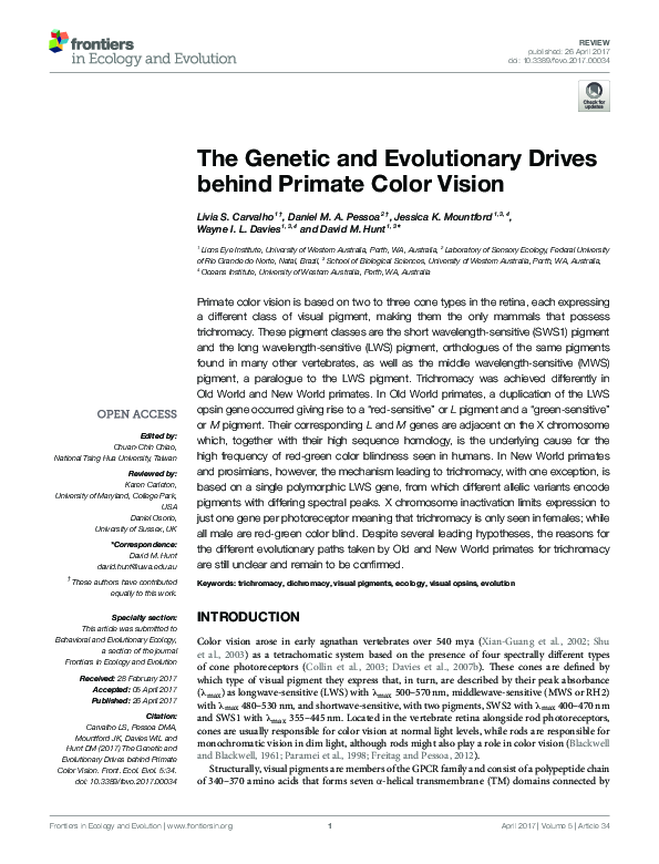 (PDF) The Genetic and Evolutionary Drives behind Primate Color Vision