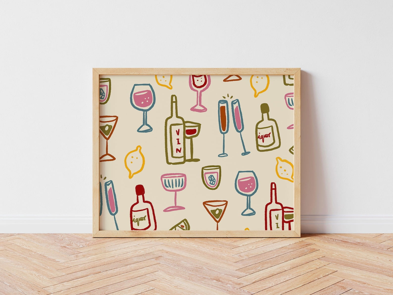 Colorful Drink Glasses Illustration Wall Art Print Inspired Retro ...