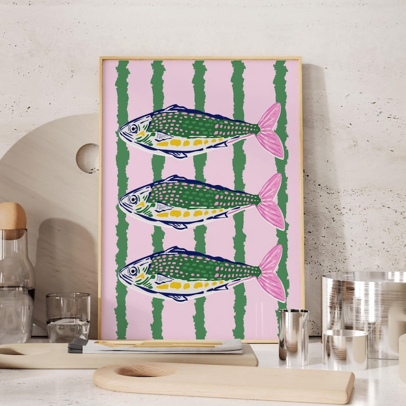 Colorful Fish Art Print Seafood Wall Decor Sardines Poster Dopamine ...