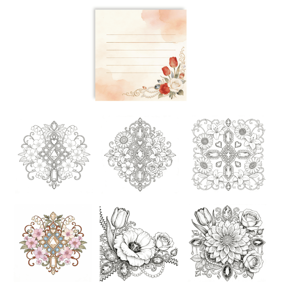 100 Sheets Stress Relief Coloring Sticky Notes: Original Floral & Gem ...