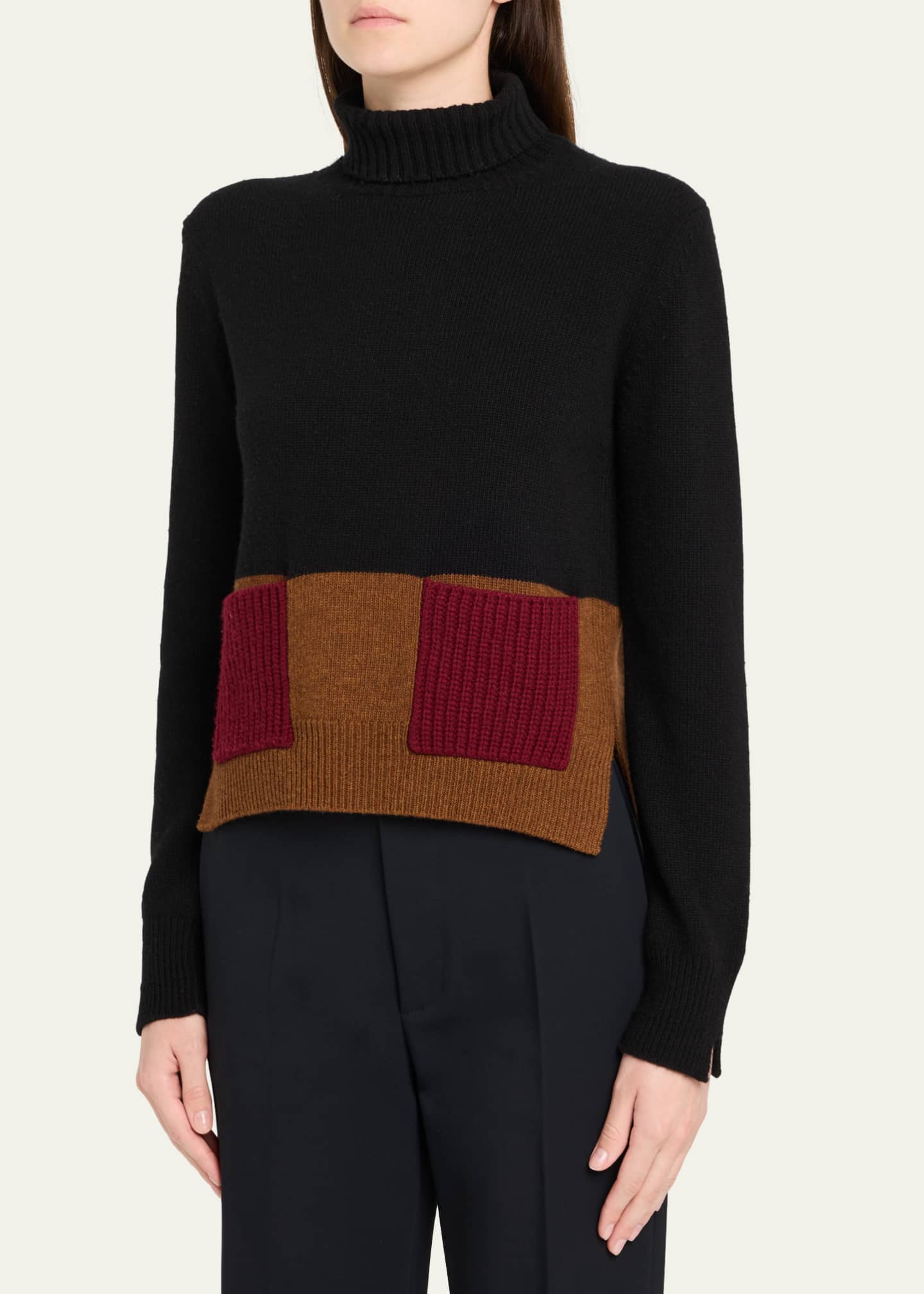 Plan C Turtleneck Colorblock Wool-Cashmere Sweater - Bergdorf Goodman