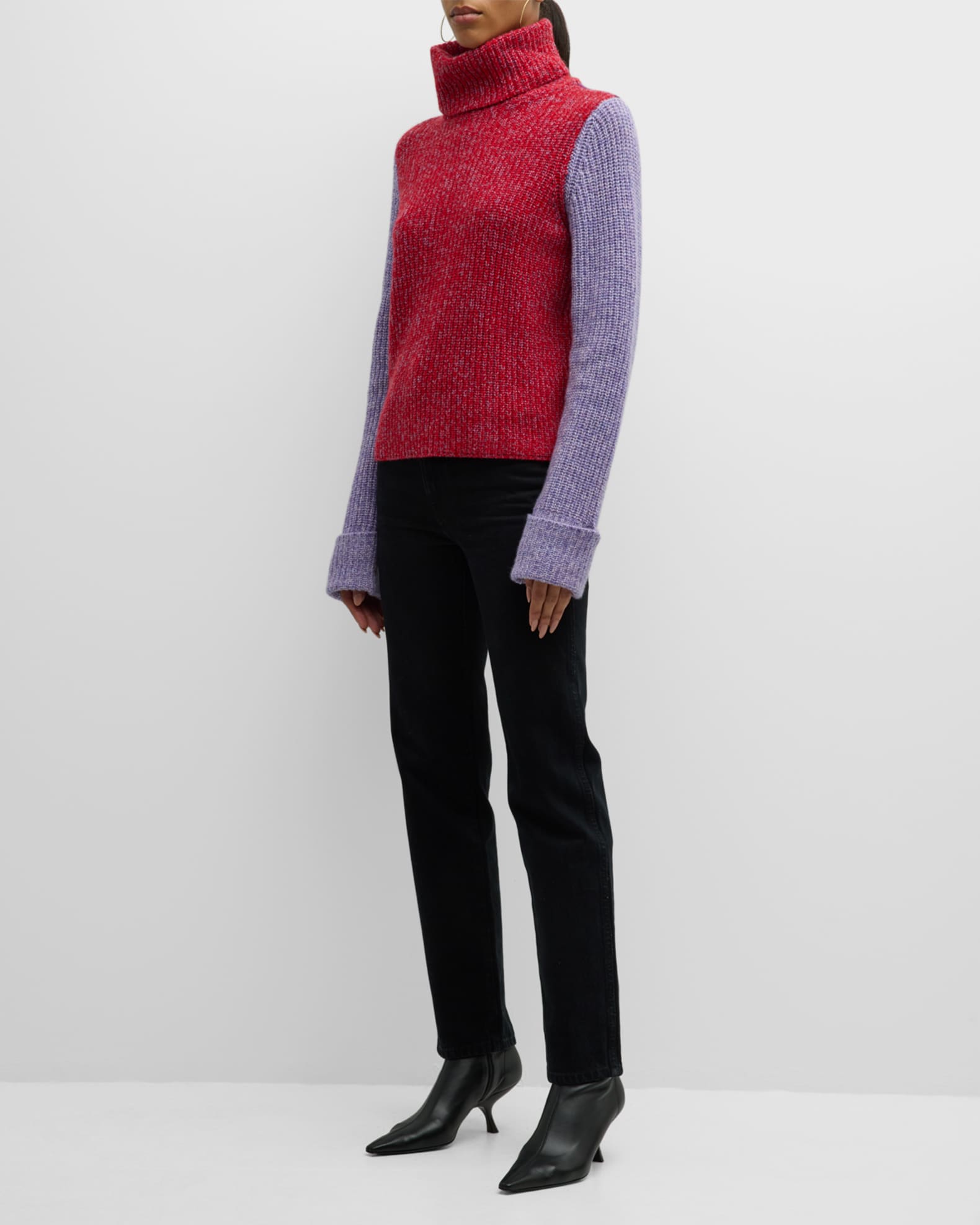 Autumn Cashmere Colorblock Tweed Turtleneck Sweater | Neiman Marcus