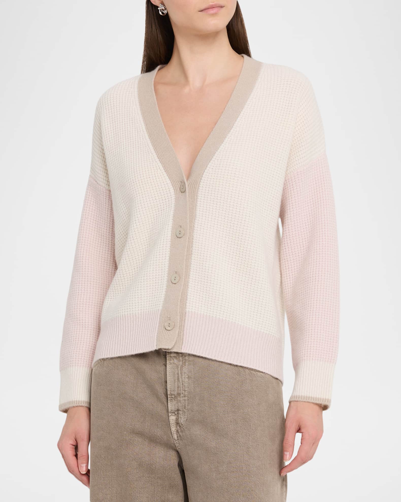 Autumn Cashmere Ribbed Colorblock Cashmere-Wool Cardigan | Neiman Marcus