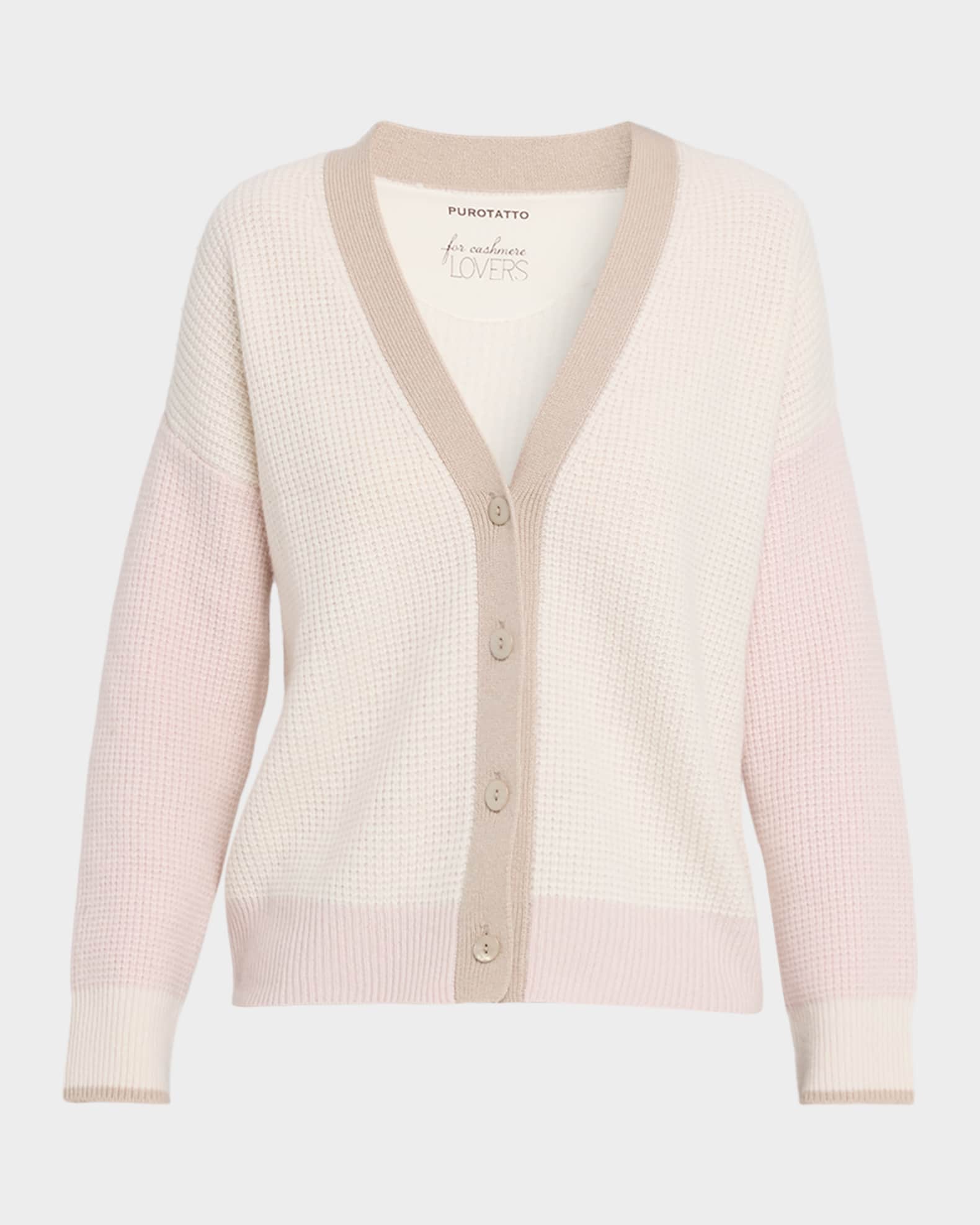 Purotatto Waffle-Knit Colorblock Cashmere Cardigan | Neiman Marcus