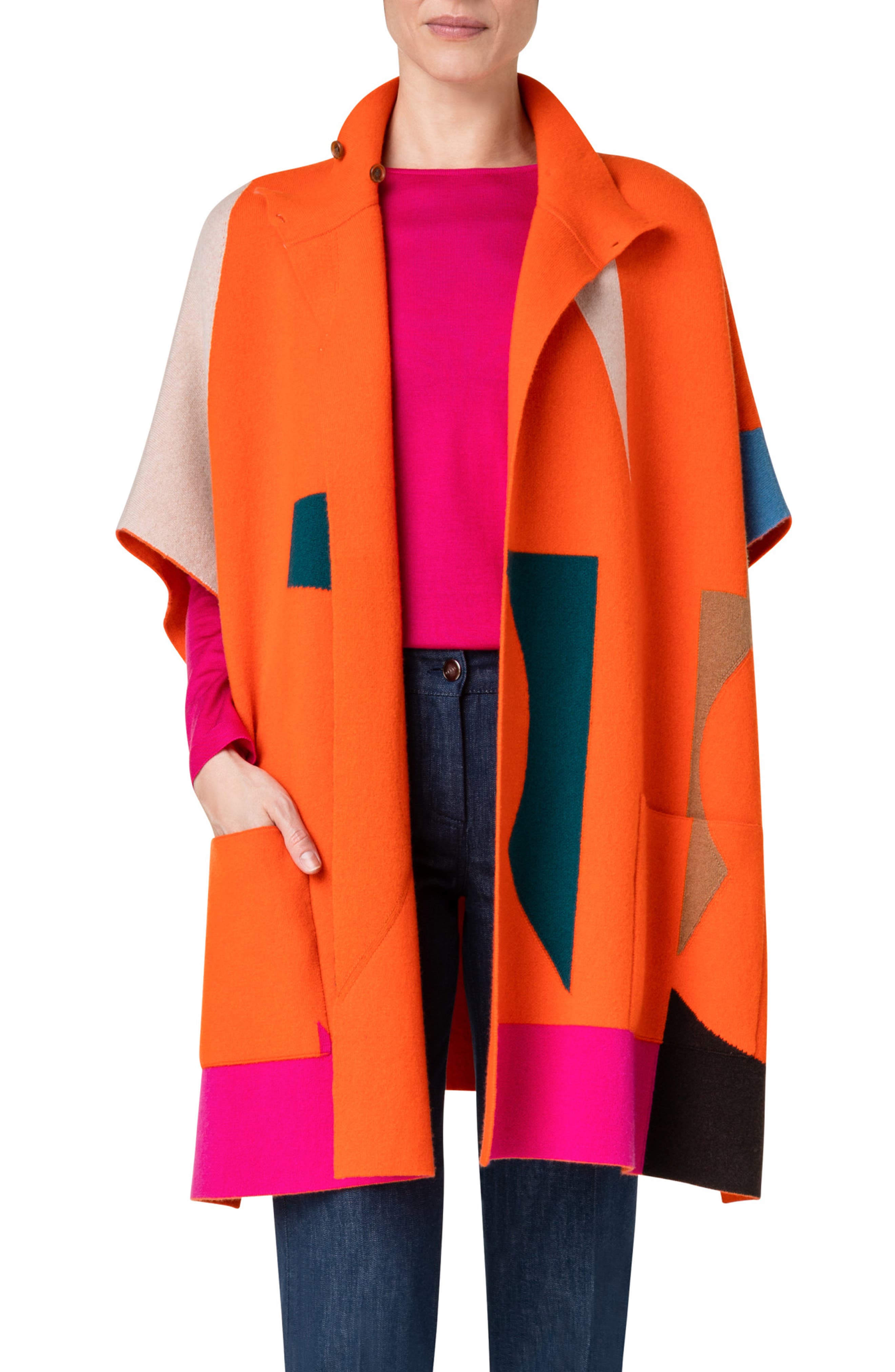 Akris Colorblock Intarsia Cashmere Cape | Nordstrom