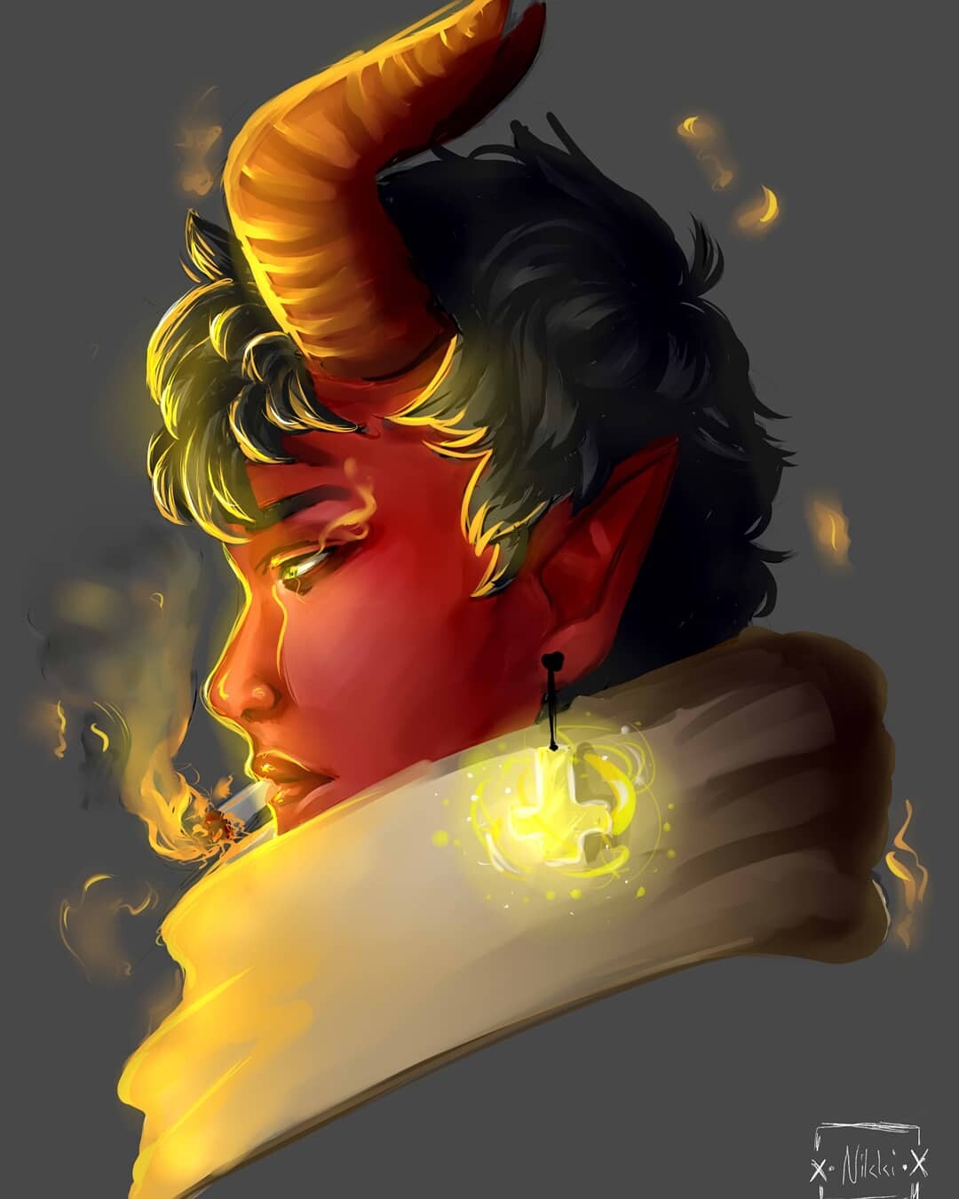 Premium Vector | Artwork illustration handsome devil with fireball power