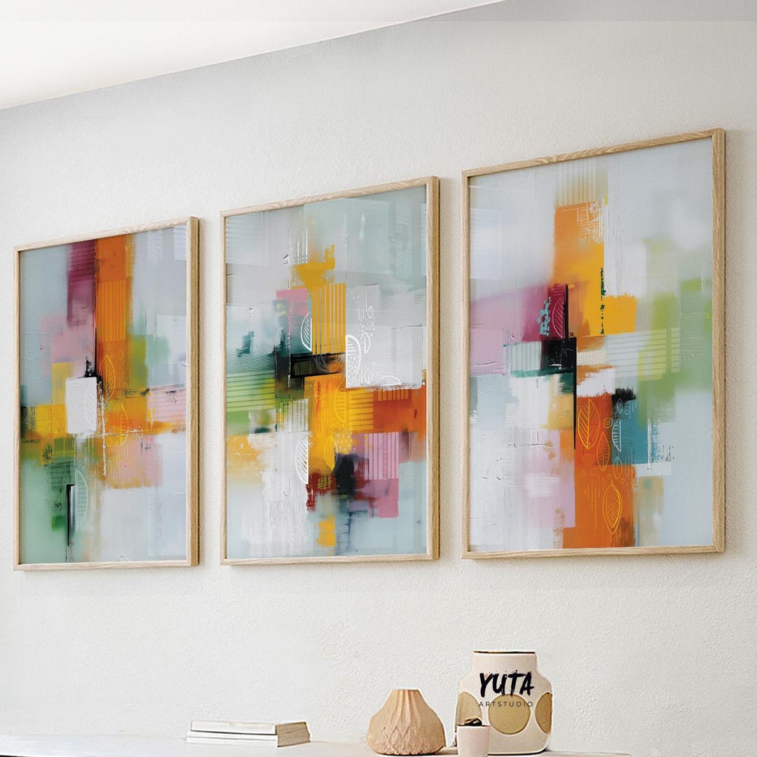 Colorful Abstract Spring Nature Wall Art Set of 3 – Modern Ceometric ...