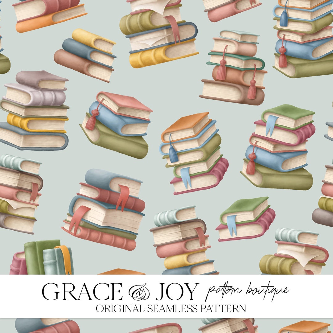 Book Seamless Patterns - Pastel Book Lovers Digital Paper – Northern ...