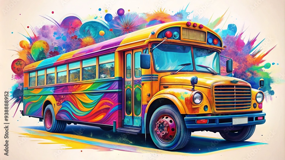 Colorful school bus illustration transformed into a vibrant work of art ...