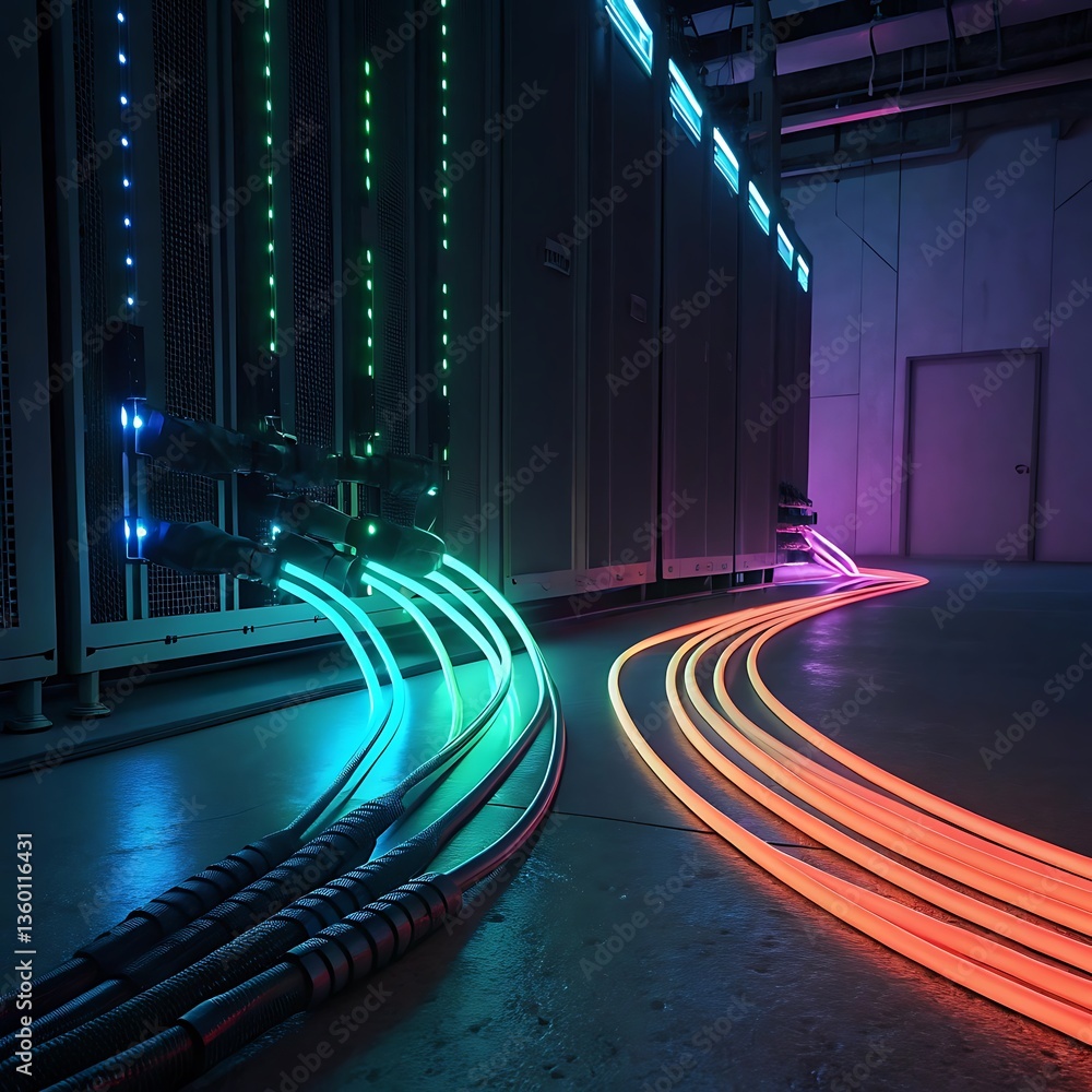 Abstract Neon Cables Connection Illustration, Data Center Technology ...