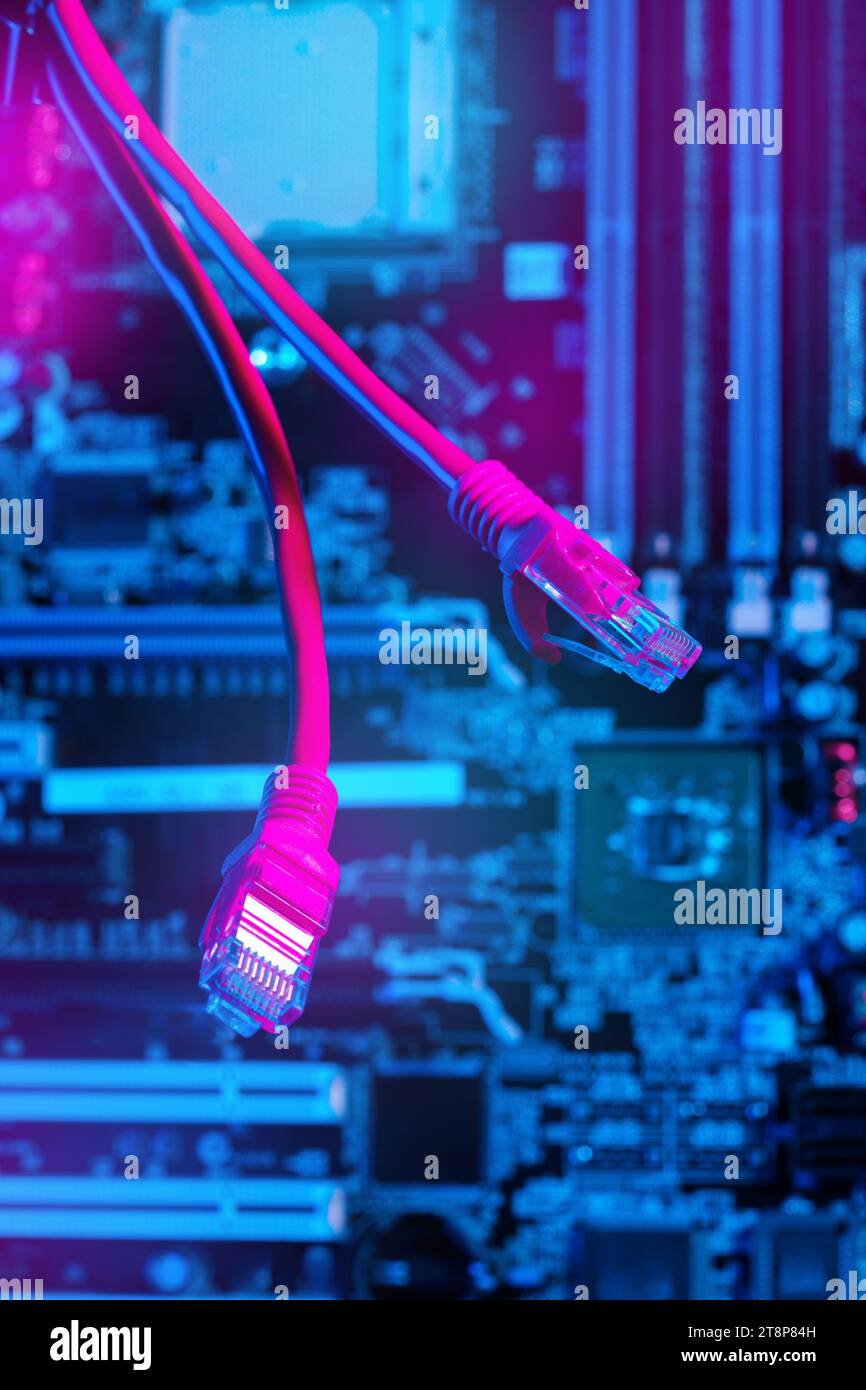 Modern technology network cable in neon light Stock Photo - Alamy