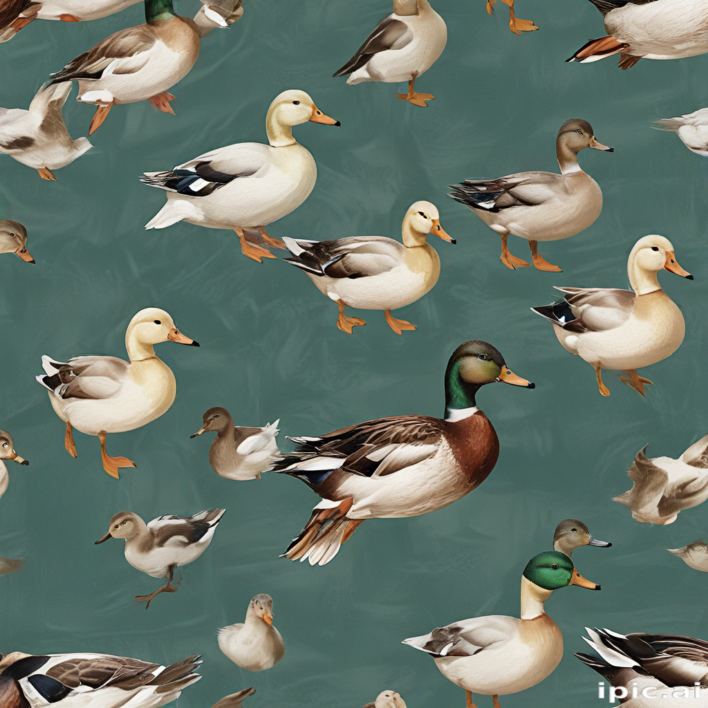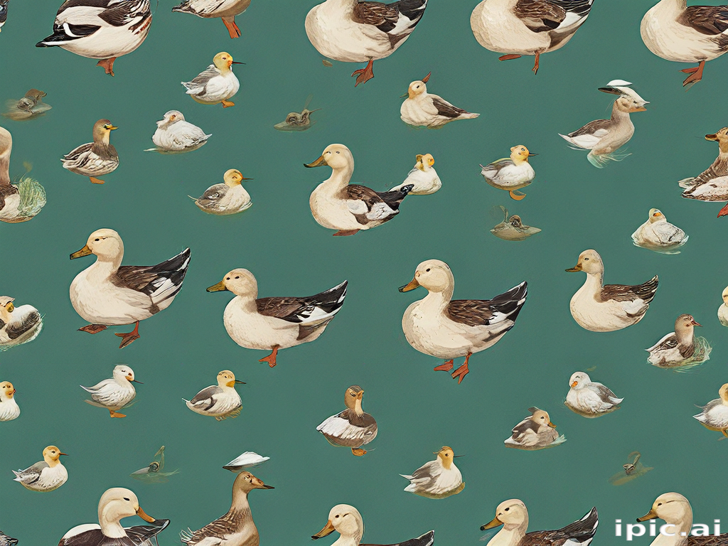 A Colorful Pattern of Ducks and Ducklings in Various Poses and Sizes