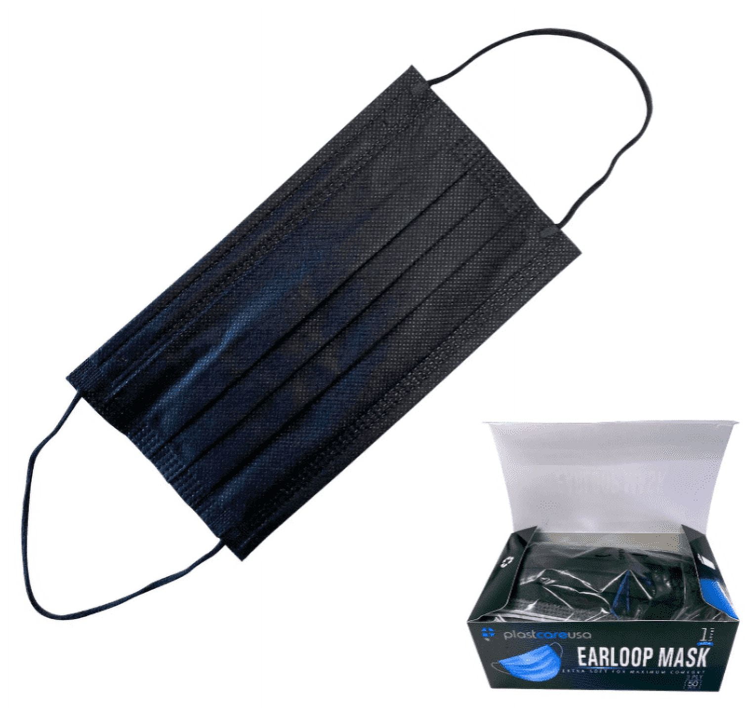 50 Plastcare USA 3Ply Ear-Loop Mask Level 1 (Black) - Walmart.com