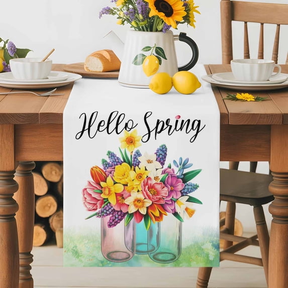 Burlap Table Runner 70 Inches Long, Hello Easter Spring Flowers Vase ...