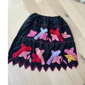 Vintage | Skirts | Vintage Womens Black Embroidered Uroh Skirt Colorful ...
