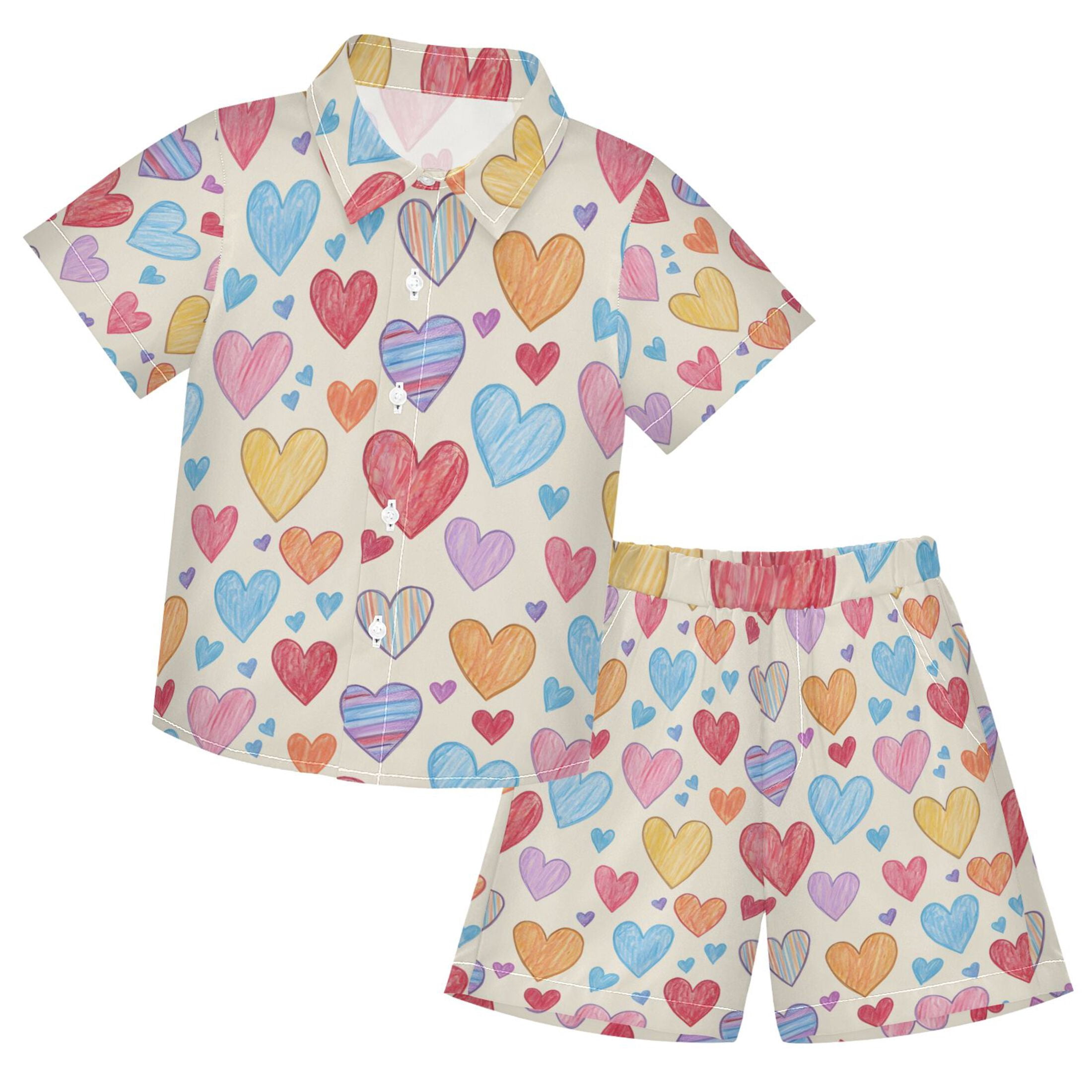 Colorful Hearts Pattern Boys' Hawaiian Shorts Sets Button Down Shirts ...