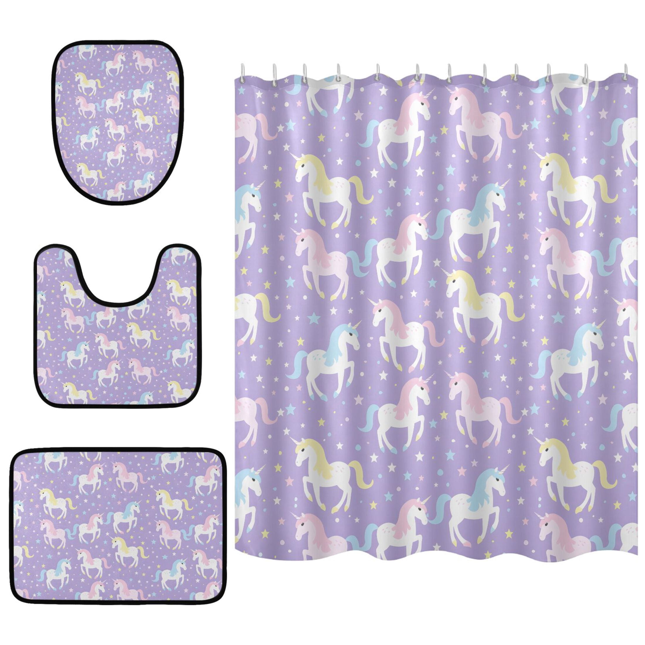 Colorful Horse Pattern Shower Curtain Sets 4 Piece Waterproof Bathroom ...