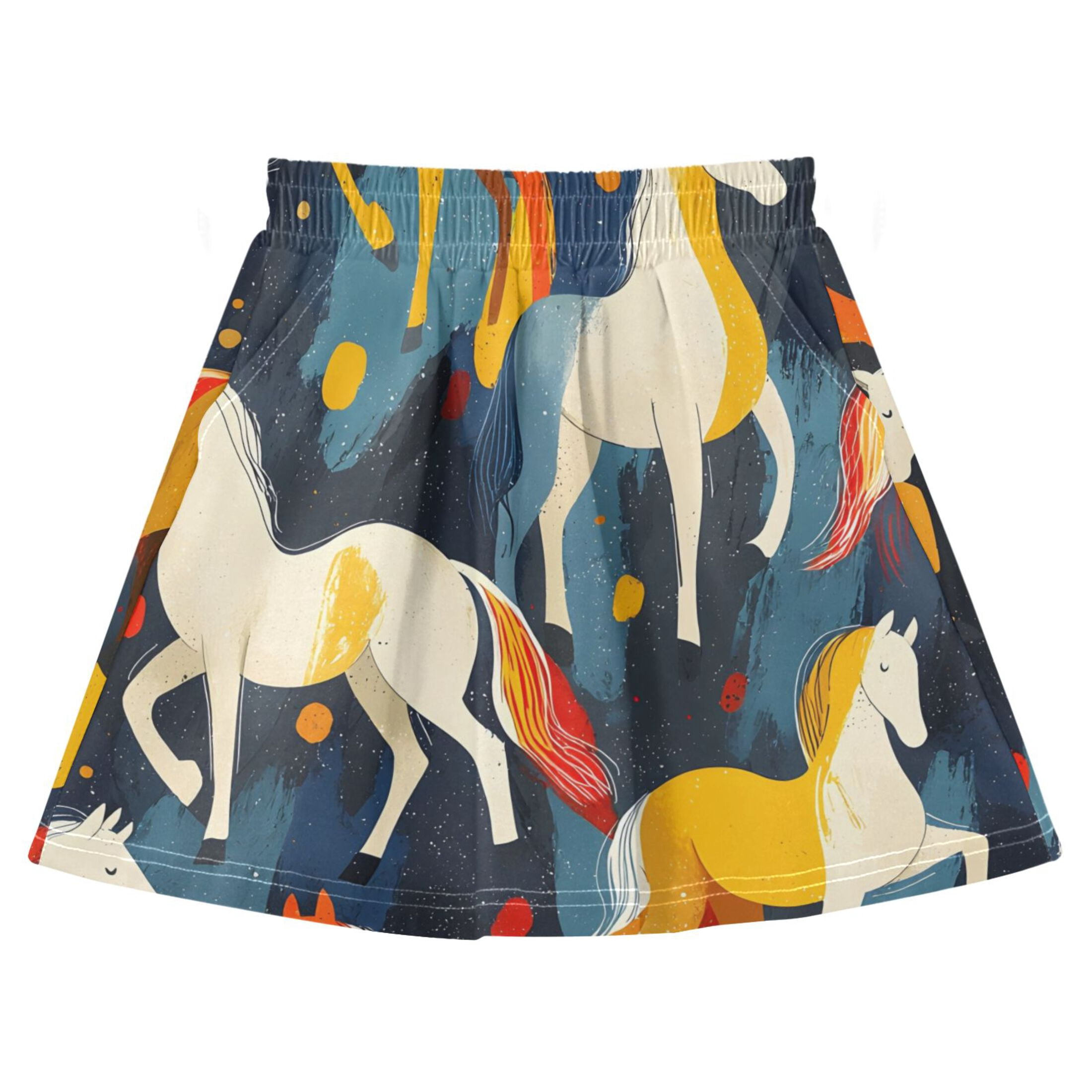 Colorful Horse Splash Pattern Cotton Skirt Built-in Liner Elastic A ...