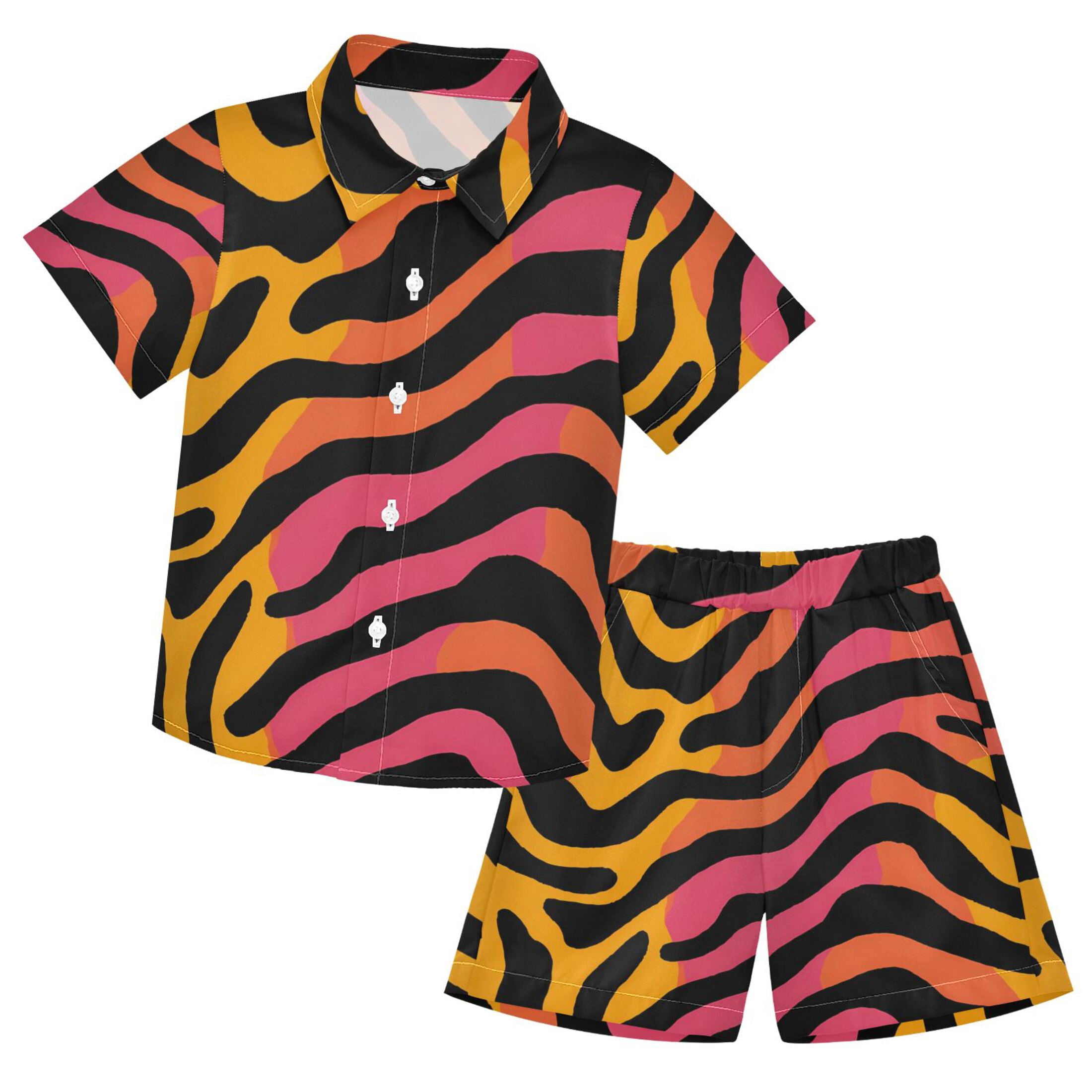 Colorful Tiger Stripes Pattern Boys' Hawaiian Shorts Sets Button Down ...