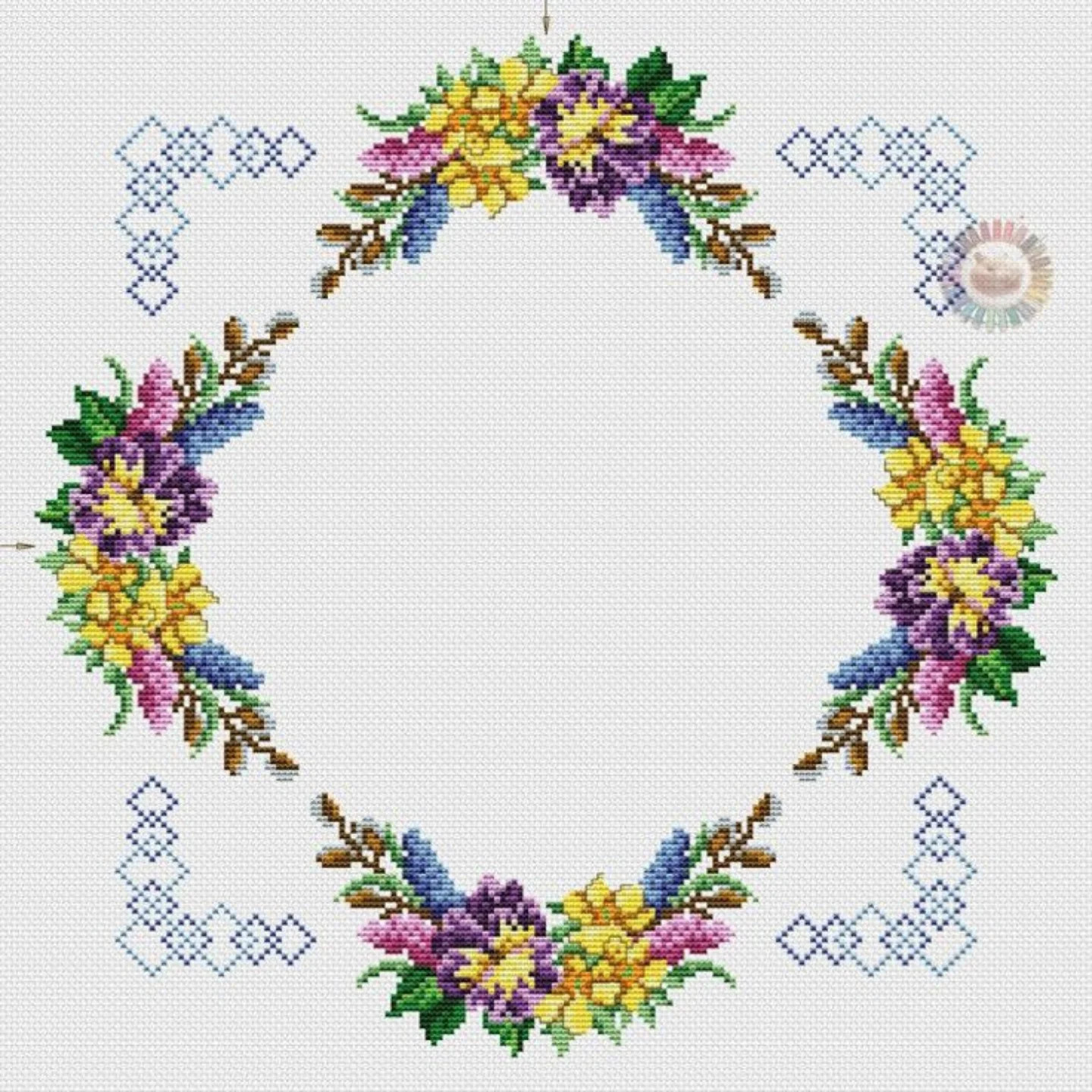 Colorful Floral Wreath Cross Stitch Pattern Chart with DMC Floss Guide ...
