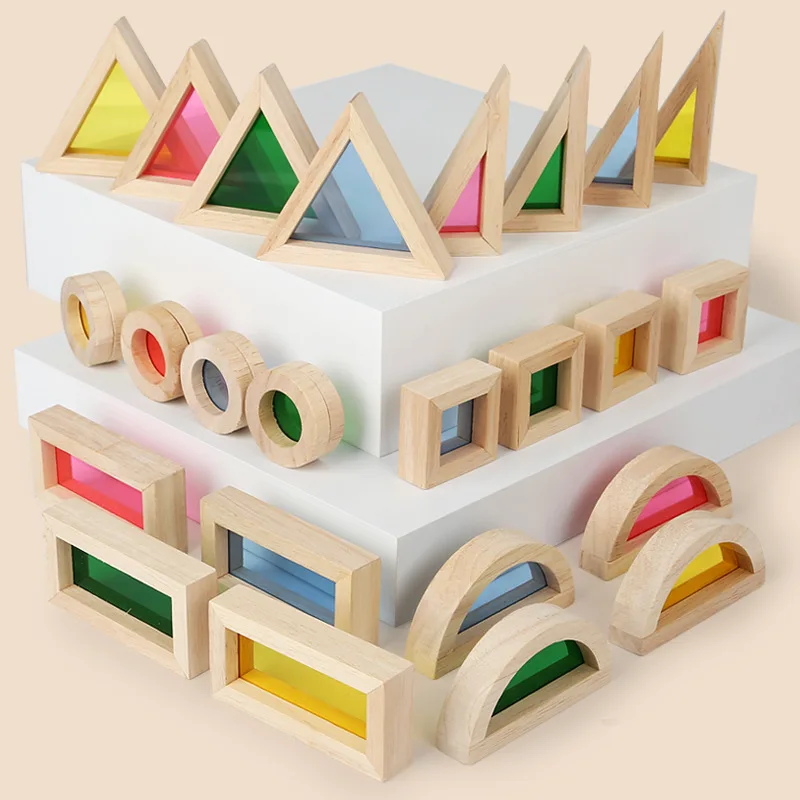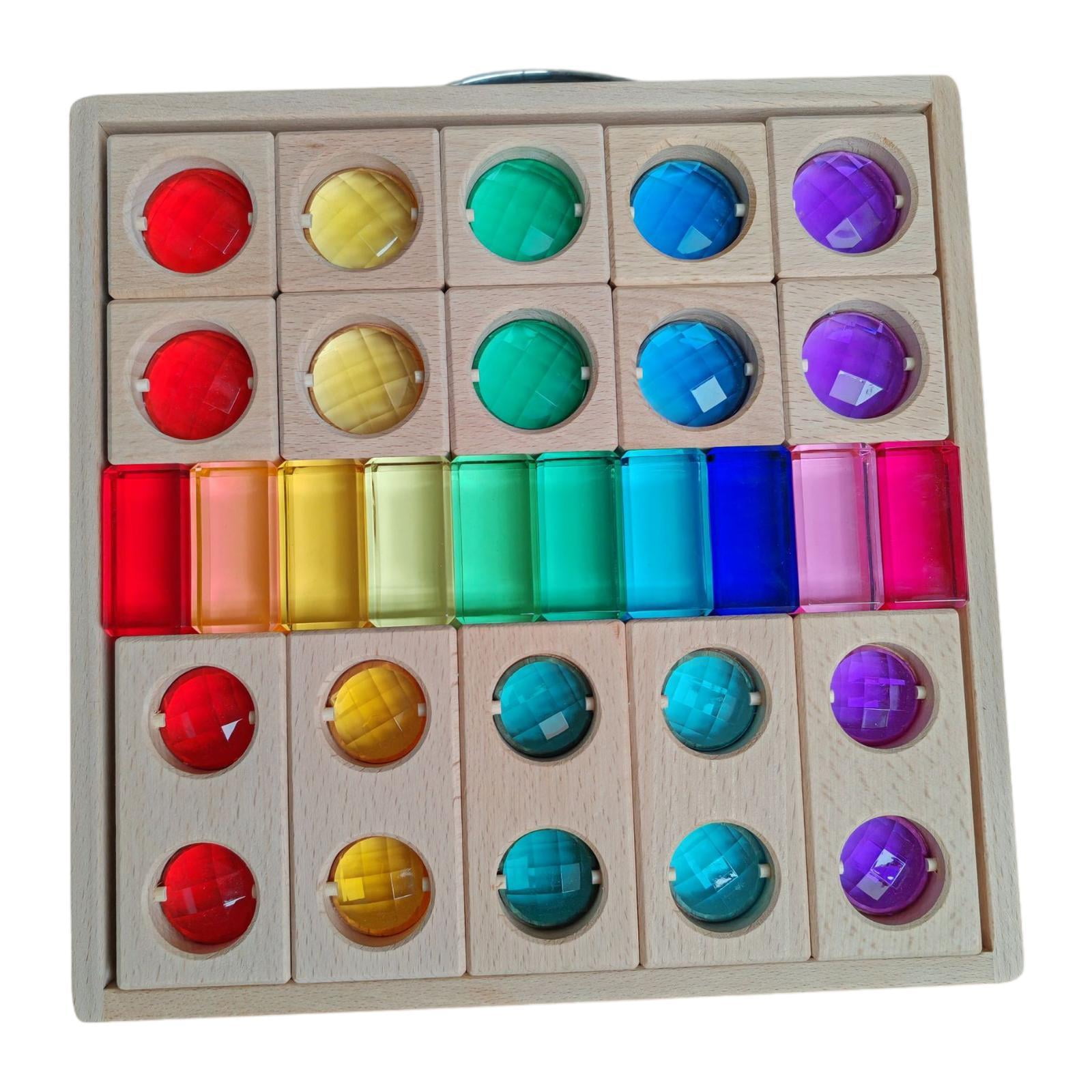 yotijay Acrylic Wooden Blocks Set Colorful Rainbow Stacker for Children ...