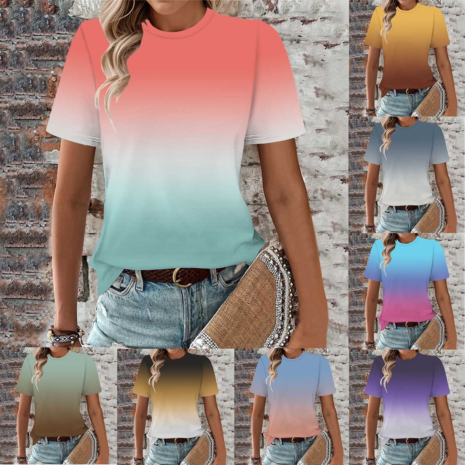 Chbgutlmr Tops for Women Trendy Short Sleeve Crew Neck Gradient Color T ...