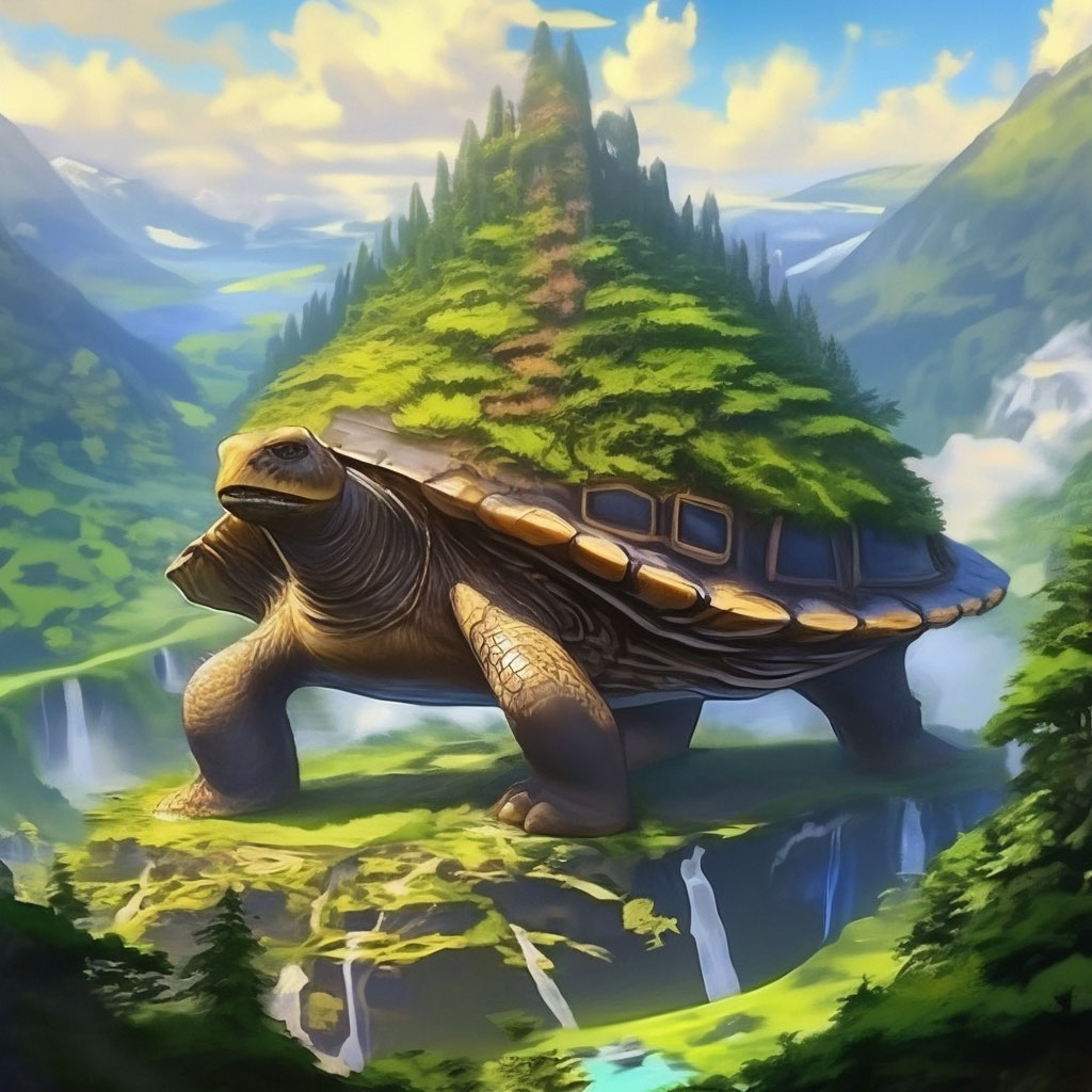 Colossal turtle with island ecosystem on its shell | Deep Dream Generator