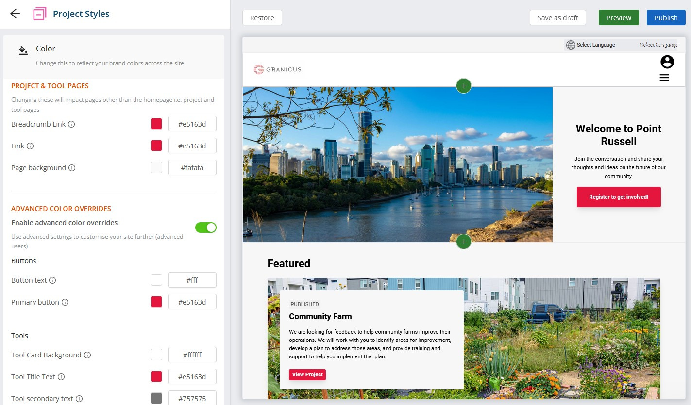 Color Options for the Classic Project Theme | Granicus Support