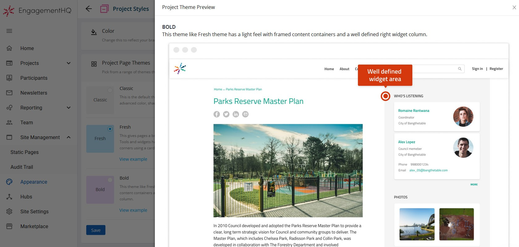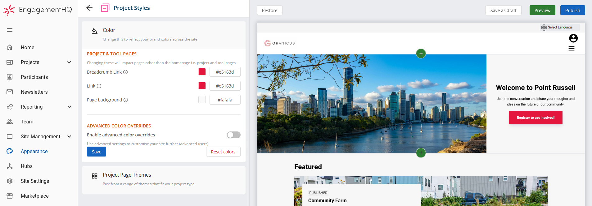 Set Colors for the Fresh and Bold Project Themes | Granicus Support