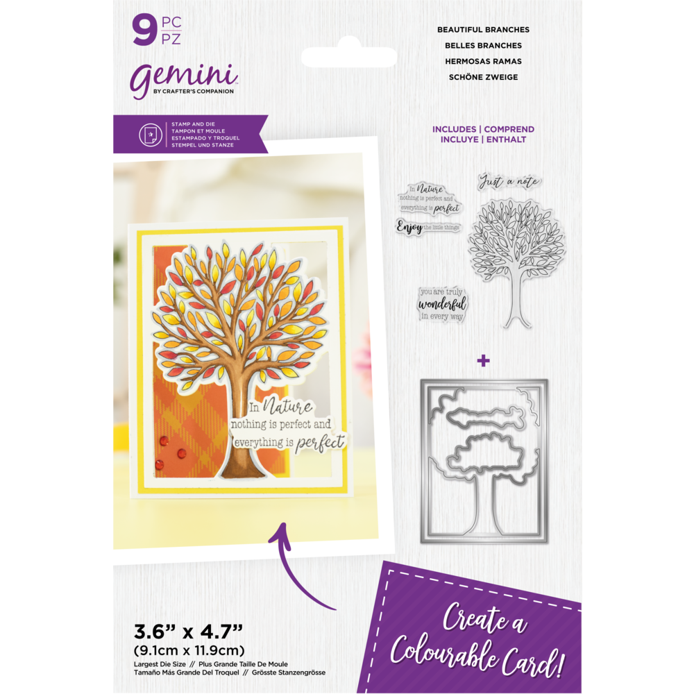 Colourable Create-a-Card Stamp & Die Beautiful Branches (GEM-STD-BBRAN ...
