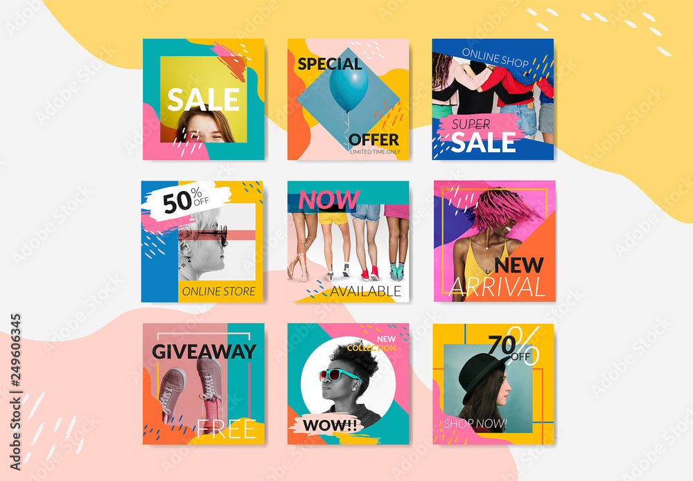 Colorful Social Media Posts Set Stock Template | Adobe Stock