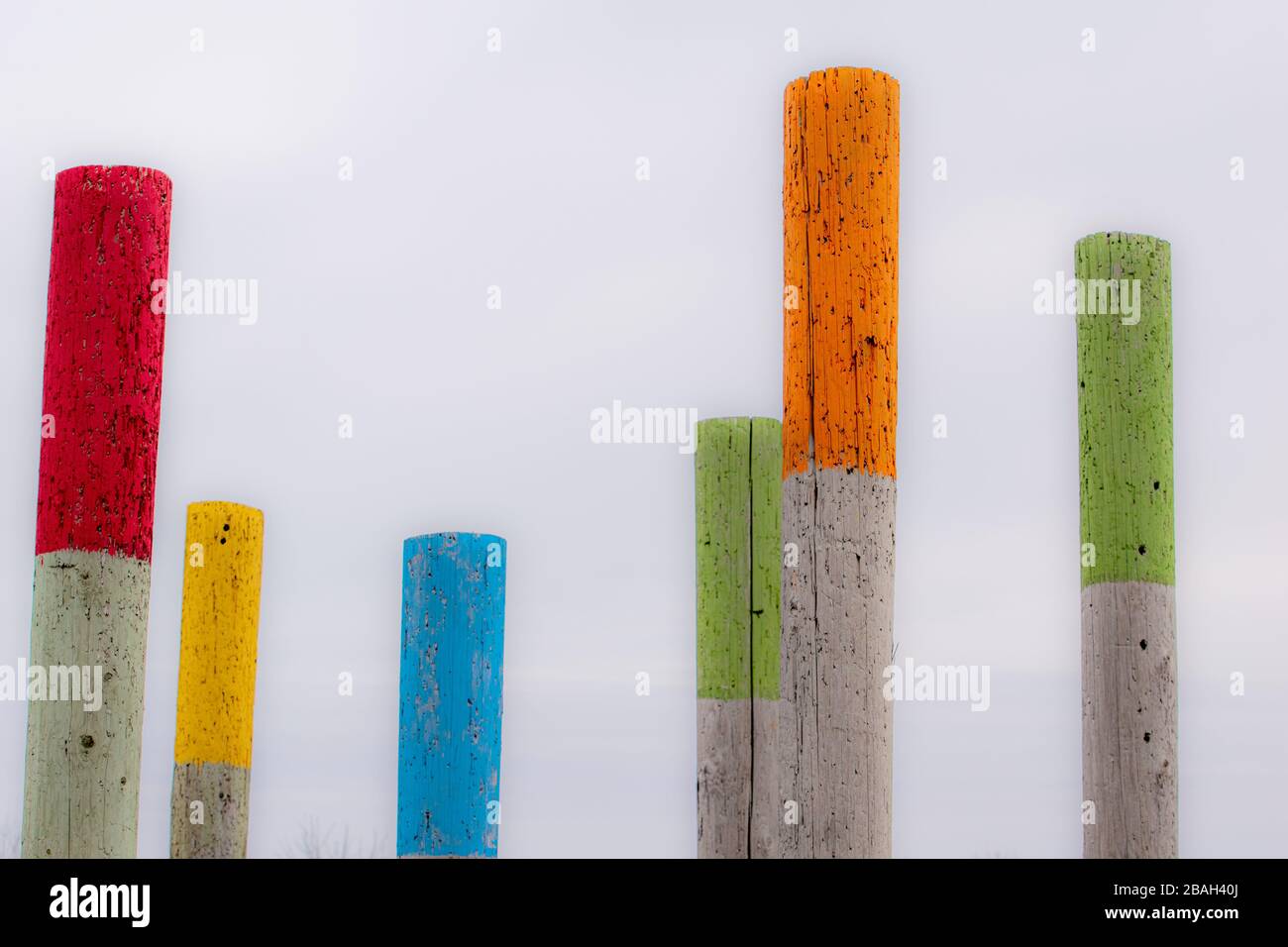 Colorful Posts Stock Photo - Download Image Now - Blue, Cement, Green ...