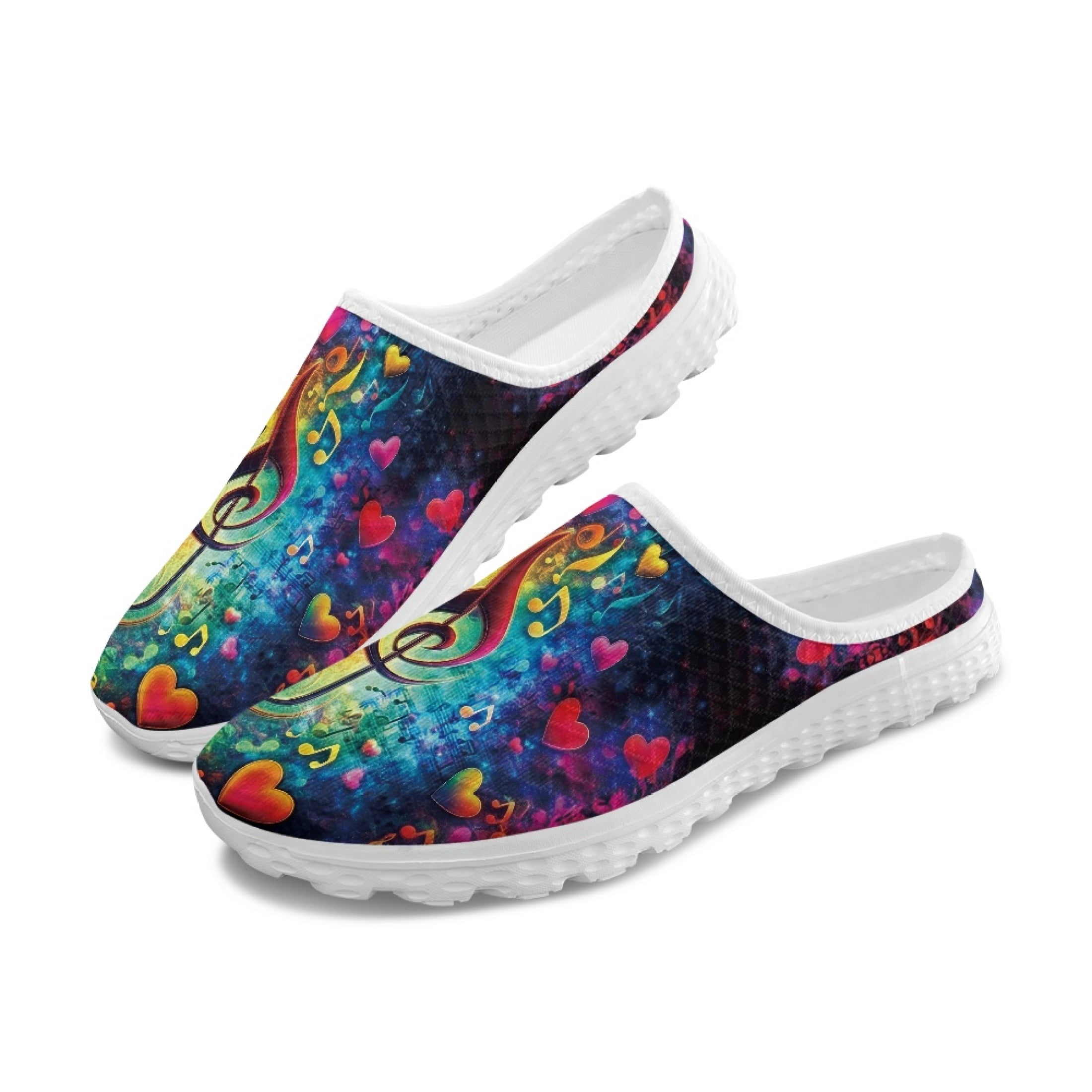 Chririnla Colorful Musical Notes Hearts Mesh Slip On Clogs - Breathable ...