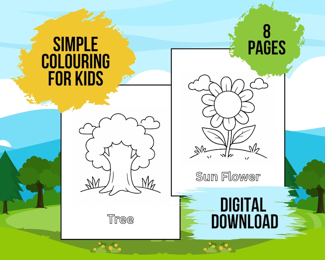 Easy Coloring Pages for Kids, Coloring Page Bundle, Preschoolers ...