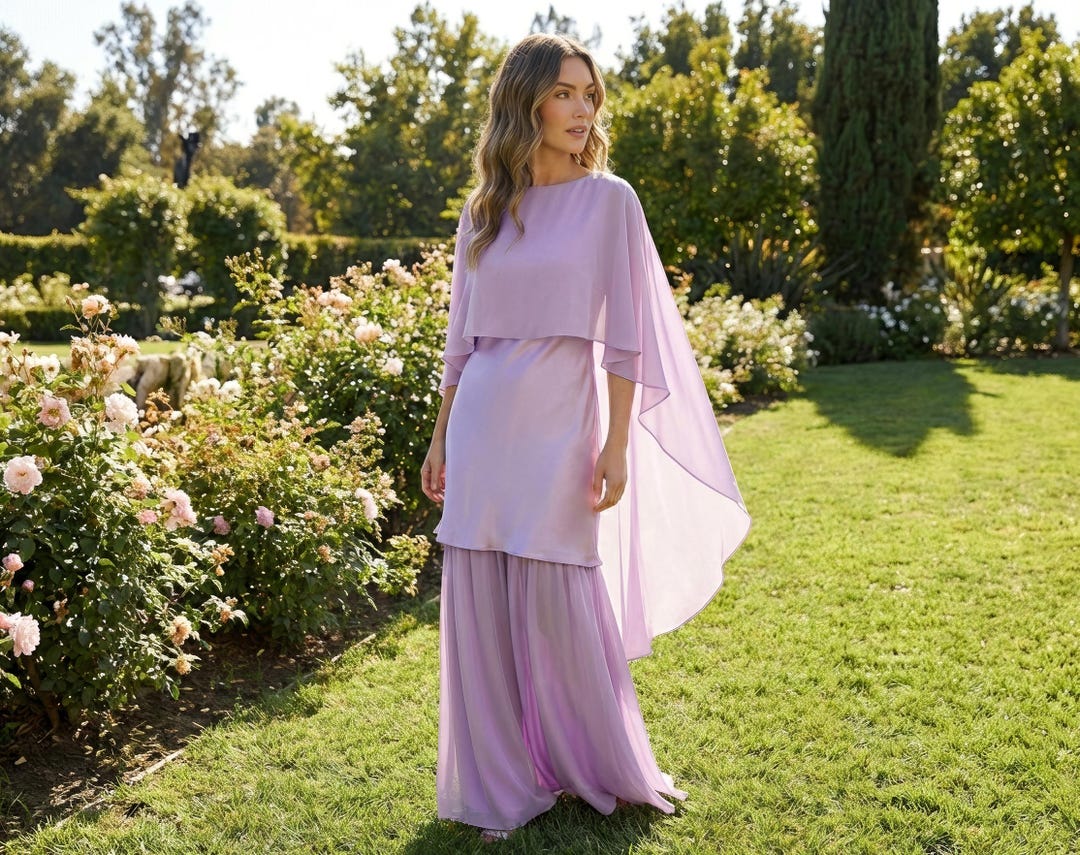 Vestido de noiva lilás em seda e chiffon com capa - Damas de honra ...
