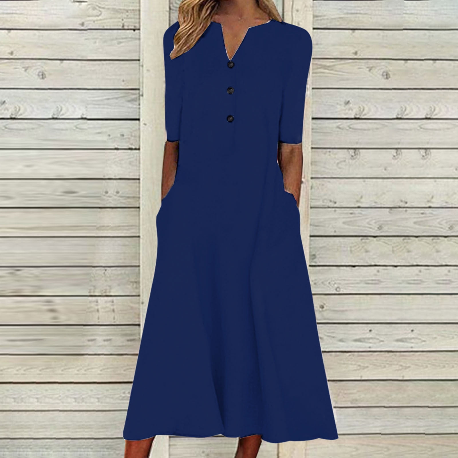 Ayolanni A-Line Summer Dresses for Women 2026 Formal V-Neck Solid Color ...
