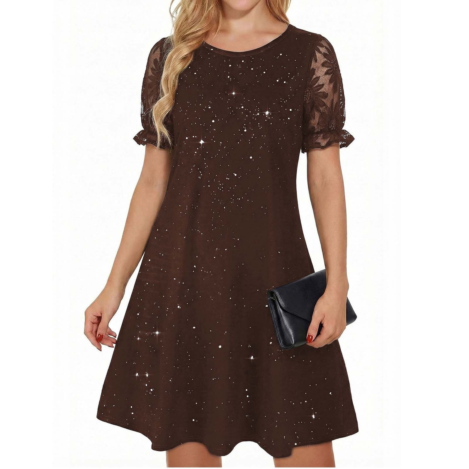 Ashyfjp Womens Dresses Fashion Solid Color Glitter A-Line Dress with ...