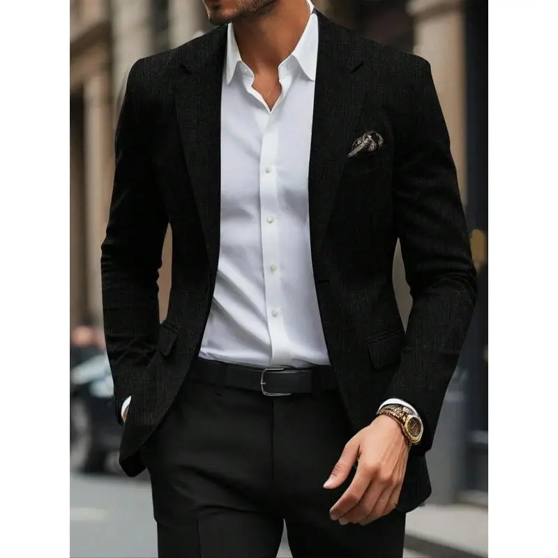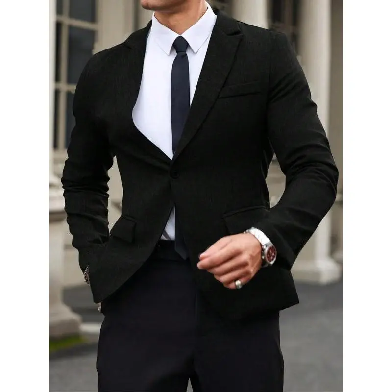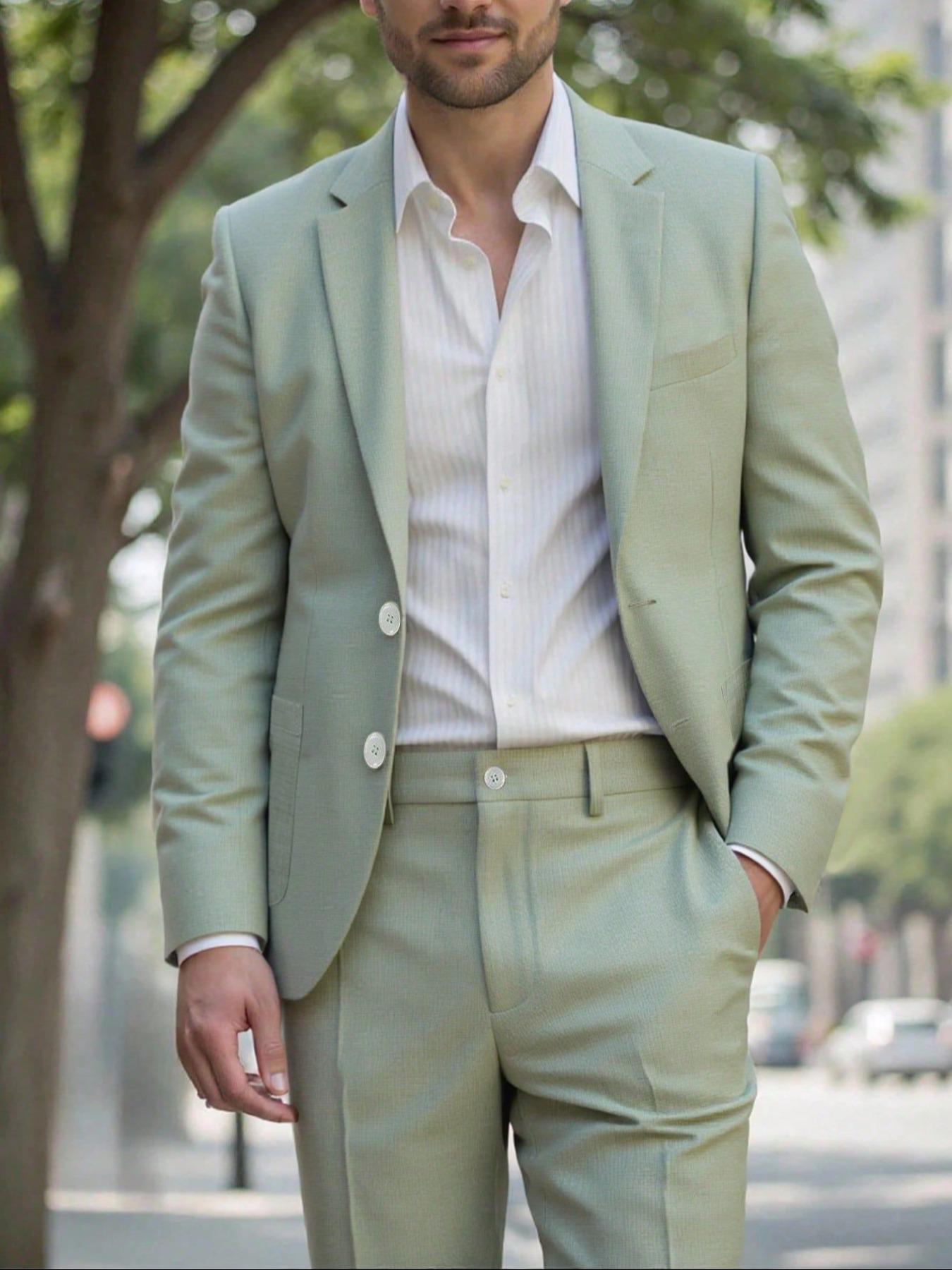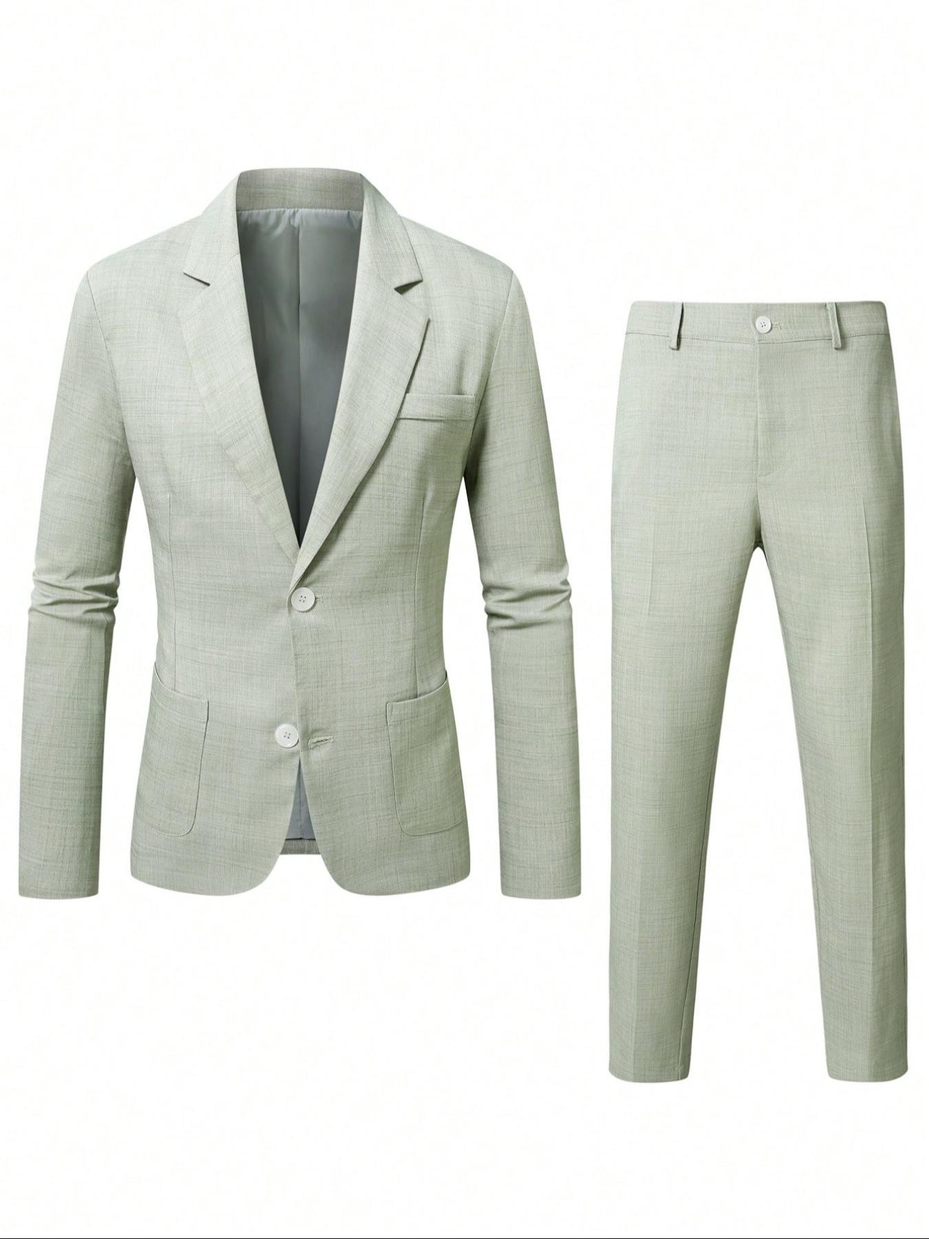 Men's Solid Plain Color Slim Fit Suit Set, Elegant Fashion Wedding ...