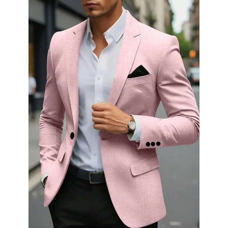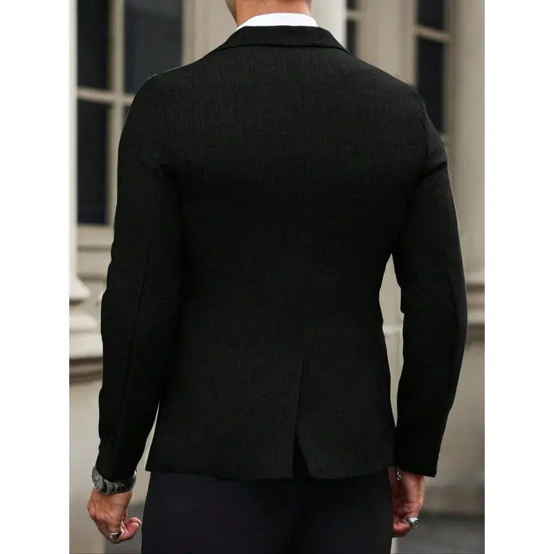 Men's Solid Color Formal Business Suit Jacket, Slim Fit Long Sleeve ...