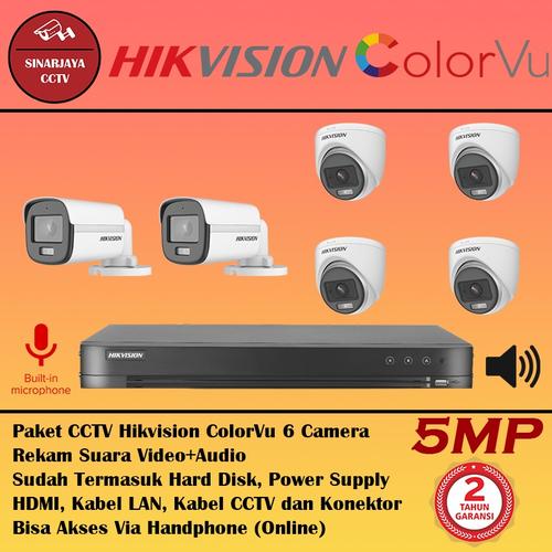 Jual Paket Cctv 6Camera Hikvision 5MP ColourVu Audio Bisa Merekam Suara ...